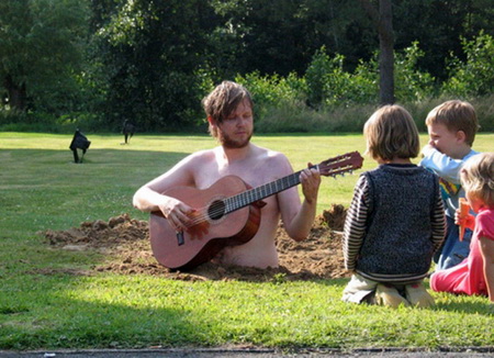 “很久之前有一座充满了凄凉之美的岛屿,这座小岛兼具火山与冰川,奇特的冒着热泡的湖泊以及沸腾的喷泉;有时候太阳一直会亮到深夜,有时候却终日都是黑暗。这座像是被施以了魔法的岛屿是一个名叫Ragnar的男孩的家。和许多同龄的小孩一样,Ragnar喜欢想象自己长大后会干什么:比如一支乐队的主唱,身穿明亮盔甲的骑士,一位吟游诗人或者甚至是穿着黑衣、拿着一把闪亮的长柄大镰刀的死神。他会对其他的小朋友讲到关于死神的事,尽管这会让他显得怪怪的,但他似乎并不在意。随着年龄的增长,他的身体也慢慢长大了,但是他的内心深处却依然是一个小孩。所以他从不相信有什么事是不可能的——他只是不停地在被人们废弃了的屋子里创造魔法王国,穿上定制的服装,扮演那些来自他想象的世界中的角色,画画和做音乐。”这听起来像是一个童话故事,但它与拉格纳·基亚尔坦松(Ragnar Kjartansson)的情况完全相符。拉格纳·基亚尔坦松(Ragnar Kjartansson)长大后成为了冰岛的一位流行歌手,有着自己的乐队Trabant。他同样凭借表演作品“The Opera”(2001)(这是他在雷克雅未克艺术学院的毕业作品,他在一个小房间里打造了一个洛可可式的剧院,并且在里面连续表演了十天)、“Death and the Children”(2002)(这是一件视频作品,在其中,参加夏令营的小孩在一个美丽的夏日里在墓地中邂逅了死亡,然后他们坦然地讨论了它。这是一次偶发事件,场景并不是孩子们表演出来的)、“The Great Unrest”(2005)(他在其中打扮成了维京人的样子,在乡下某间被遗弃了的剧院里唱了一整个星期的蓝调歌曲)等被人们认可为是一位行为艺术家。