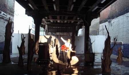 创作于2007年的作品“Folksong”是一场持续了10天的表演。每天六个小时,拉格纳·基亚尔坦松(Ragnar Kjartansson)都会站在他搭建起来的充满了秋天的树木与落日的生动场景里,向观众大声唱出他的心声。这件作品是欧洲人对美国的一种真实坦率的呈现,充满了来自不同文化产品中的陈词滥调。拉格纳·基亚尔坦松(Ragnar Kjartansson)穿着酒会晚装,装备着一把亮红色的吉他和大功率的扩音器,反复表演着来自一首未知但却特别熟悉的曲子里的一段。同样创作于2007年的作品“Weltschmerz”向德国古典美学中的重要术语“世界苦恼(eltschmerz)”及其伴随的极端的浪漫主义与表现主义表达了敬意。这样的情绪在重金属音乐中也有所呈现;因而在这件作品里,一位低音吉他手站在一个被取名为“eltschmerz”的临时小棚里演奏着一段孤单的曲调。