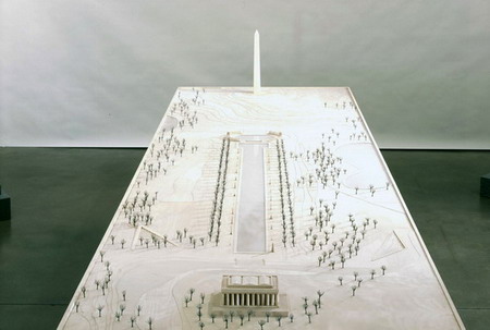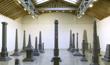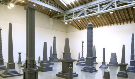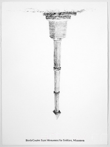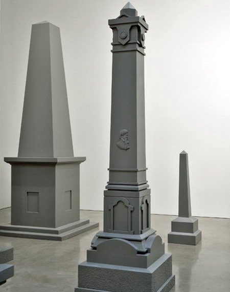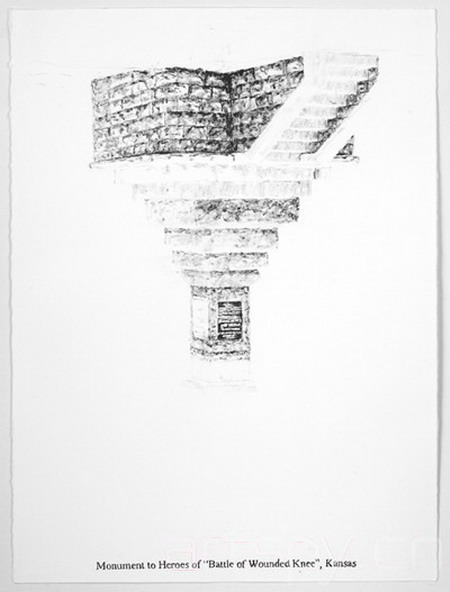 这位洛杉矶艺术家建议将一个象征着美国殖民统治和向西扩张的,还有白人与美洲印第安人之间的差距的大屠杀纪念碑搬走。画廊呈现了包括大型灰色古迹雕塑装置、绘画和桌面模型。它具有经典的观念艺术风格,这件作品视觉性严格,并且充斥着尺度与规则。比如,这些古迹中没有一个是抽象模拟的;所有都保持着“垂直轴线的正式规格”,就像华盛顿的那个方尖碑一样。该项目可以被看做是对美国在伊拉克战争的批判。