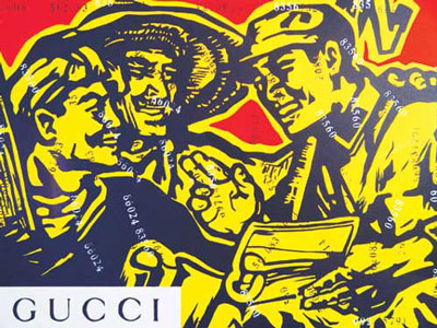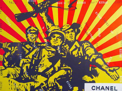 前苏联的政治波普在西方迅速走红,而后又迅速地无人问津,并不是什么偶然的事件,因为例如把伟大导师和可口可乐放在一起这类小伎俩,其风格仍停留在拼贴图 像、简单化处理语境的地步。王广义也是用了同样的方法,即某种中国图像+某种西方图像,而且这种方法在中国当代艺术界屡试不爽,效仿者前仆后继。