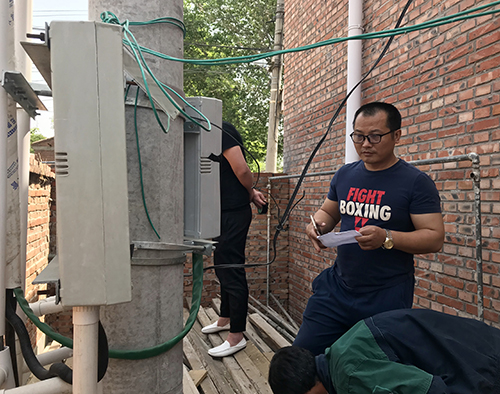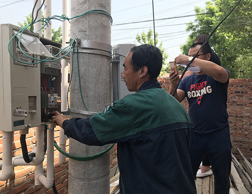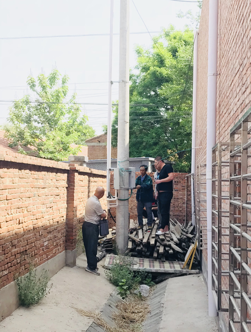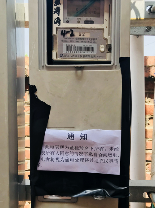 ▲ 卖房村民周金勇(中)与电管所人员非法断电、封表现场