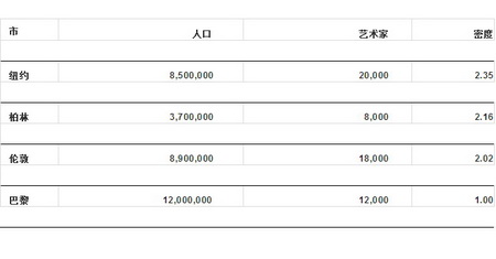 结合这些城市的人口数据,每1000名居民中艺术家的密度如下: