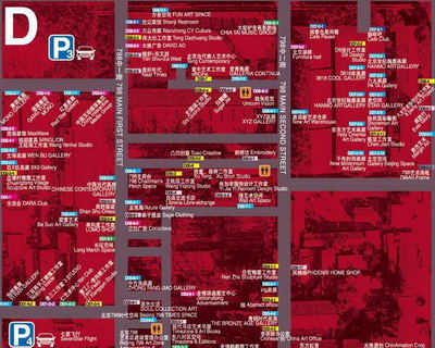 A区:四合苑画廊、站台·中国、紫禁轩画廊、北京公社、云天水地画廊、0度空间、F2画廊、艺术文件仓库、广汉堂古典家具展厅、北京艺术文件仓库、三影堂摄影中心、叶永青工作室、三工作室、空理工作室