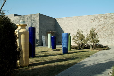 草场地艺术区就像一条断了线的珍珠项链,艺术机构、艺术家工作室就是散落在草场地村里的一粒粒珍珠。草场地艺术区除了有ABCD四块较大的艺术机构聚集的区域以外,还有很多知名的艺术机构和艺术家的工作室隐藏在草场地村里。村子里有好几条路,而这几条路又都没有名称,所以你也就很难形容,哪个机构或者哪个艺术家的工作室都在哪条路上。并且艺术机构和艺术家工作室大多没有特别显眼的牌子,你只能根据所看到的一些迥然不同于民居的灰色房子和红色房子去辨别,这些房子大部分都是艾未未设计的那种外表简洁却内含玄机的新现代主义风格的建筑。村子里的艺术机构除了上面提到的瑞士著名的麦勒画廊,还有香格纳画廊、秀瓷画廊、空白空间、艺术通道、荔空间、前波画廊、泰康空间、现在画廊、吴文光草场地工作站等等。