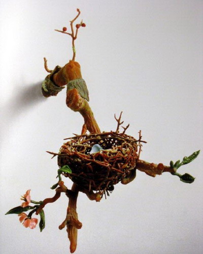 早期的装置主要是室内作品,后来走向了室外。在今天,室内装置的特征是逾趋精致,例如在纽约艺术家吉姆·哈杰斯(Jim Hodges,1957-)的室内作品中,有一件是用相当俗气的工艺品制作方式,在开花的树枝上作了一个鸟巢,给人玉树琼枝的感觉。他的室外装置也相当精致,将壁画与抽象雕塑的理念统合起来,装饰性较强。几乎所有的装置艺术家都有室内与室外的过渡与贯通,但各人情况不同。纽约女艺术家佐伊·廖纳德(Zoe Leonard,1961-)将无数芭比娃娃排列在展厅地面上,提示了空间场景的转移,而实际上她相当关注人的生存与活动空间,着意于空间憋窄的压抑感。纽约艺术家马修·里奇(Matthew Ritchie,1964-)也关注空间关系,他对展厅墙面、天顶、室内空间的处理,既是形式探索,也是观念表述。另一位女艺术家拉希尔·凯多瑞(Rachel Khedoori,1964-)则干脆把室内当作室外,在展厅里进行建筑布局和房间设置的探讨,表现出对装置空间的特别认知。