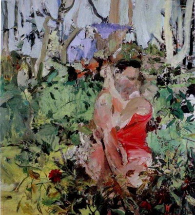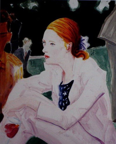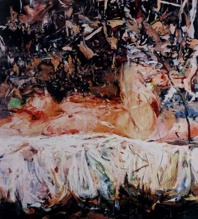 这类绘画也是具象的,但却较少诉诸理性而较多诉诸感性,尤其注重传统的绘画性。生于英国伦敦现居美国纽约的女画家西西丽·布朗(Cecily Brown,1969-)是这一倾向的代表,其作品在材料、构图、设色、用笔等方面都追随20世纪前期的表现主义和20世纪后期的新表现主义,但却以露骨的色情内容而具有美国式前卫的大胆和开放,同时又以漂亮而激越的视觉效果获得了市场的成功。纽约另一位女画家伊丽莎白·佩顿(Elizabeth Peyton,1965-),相比之下就显得沉着冷静一些,她仿效表现主义的用笔用色去进行玄学式冥想,其作品主要是历史和当代文艺界名人的肖像,以及家人与亲朋好友的肖像。在历史的永恒性、名人的公众性、身边亲友的私密性之间,佩顿关注历史和哲学的容量,这是其绘画的观念特征。