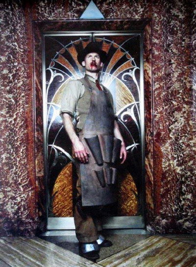 摄影术的产生与绘画密切相关,加拿大前辈摄影艺术家杰夫·沃尔(Jeff Wall,1946-)与纽约的辛蒂·雪曼一样都是摆拍的大师,但杰夫·沃尔的作品有绘画史的指涉,要么戏仿欧洲名画,要么戏仿日本浮世绘,并追求戏剧化效果。纽约后起的摄影艺术家克鲁德逊(Gregory Crewdson,1962-)也属这一路,但不同之处在于,他刻意摆布不可能的超现实场景,并制造真实的外观,从而在反差中获得荒谬感。例如,他的代表作《奥菲利亚》就摆布了莎士比亚戏剧中女主人公落水而死的舞台场面,但摄影中的奥菲利亚不是失足落水,而是倒毙于客厅,地面只漫着一层浅浅的漏水,不可能淹人致死。生于东京旅居纽约的女艺术家森万里子(Mariko Mori,1967-)更往前走了一步,她摆拍的场景有如设置道场,将摄影、影像同装置、行为合而为一,表达超验和出世的意愿,代表作有《欲望之火》、《外星浪潮》等。