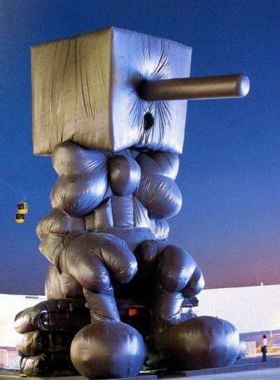 今日装置的雕塑性,主要见于制作和展示的方式,若从观念角度来看,这类装置实与雕塑相去甚远。早在20世纪后期,美国超级写实主义和自然主义的雕塑就以接近日常生活而成为波普的一种,到21世纪初更脱离雕塑而成为装置。纽约艺术家罗伯特·高波(Robert Gober,1954-)模仿中世纪和文艺复兴时期的耶稣雕像,来制作园林喷泉,在观念上打破了古典艺术与实用艺术的界限,并获得反讽效果。纽约女艺术家凯斯·艾德米尔(Keith Edmier,1967-)的作品更加世俗,但雕塑性特征仍在,而保罗·麦卡瑟(Paul McCarthy,1945-)则从软雕塑的理念出发,将大型充气装置与公共建筑并置起来,在固定与流动的反差中显得更为入世。另一方面,在今日商业化的卡通时代,雕塑式装置也以卡通形象而成为观念艺术,例如生于日本现居纽约的艺术家村上隆襟章(Takashi Murakami,1962-)的作品,便体现了这类装置的特征。