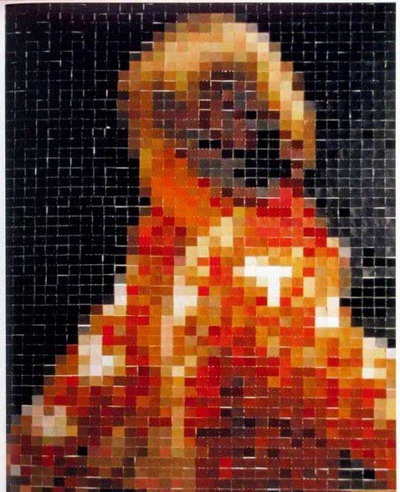 今日纯抽象绘画,当推生于英国伦敦现居美国纽约的女画家萨娜·莫里斯(Sarah Morris,1967-),其作品具有“光效应”绘画的特征,而观念性却在于探索当代社会生活中的城市空间和空间结构的问题,她因此而得以超越现代绘画的形式主义,并将形式与观念贯通起来。与此相似,生于巴西现居纽约的半抽象画家威克·穆尼兹(Vik Muniz,1961-)也在视觉结构中追求观念性,他用现成品和绘画颜料来绘制拼贴作品,并影射古代和当代大师。穆尼兹讲究视觉效果,远观其大型绘画,像是复制的文艺复兴人物或印象派风景,或像是用马赛克方式重画的里希特作品,追求摄影的眩晕感,但近距离观看,却发现这些画都是用染色垃圾拼贴而成。这样的绘制方法,可以看成是抽象与波普的贯通。