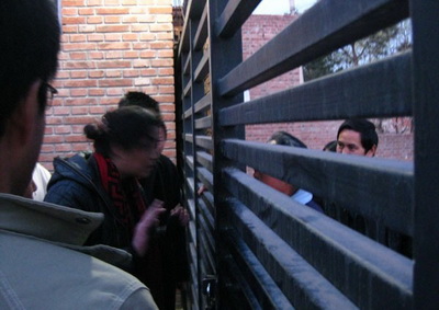 程:上个月发生的事情与其它无数次发生的事情是一样的,只要我们举行大的艺术活动,他们就会雇几个村民在门口,阻止艺术家进出,并用最难入耳的脏话破口大骂。你看到的视屏只是其中的一次而已。录像中看到的艺术家是青年舞蹈家施晓娟及她的舞蹈团队,要运器材进来被强行阻拦所发生的现场实录。