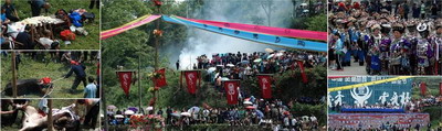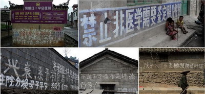 另外,“社会宣传标语”、生活情景摄影以及《苗寨婚礼》、《葬礼》、《求雨》《跳花节》等录像作品也略有涉及国家意识形态控制、金钱崇拜、迷信巫术、传统崩坏、现代文化不张等等问题。