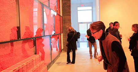 2010年吕胜中在纽约前波画廊的展览现场,红色的剪纸引起了西方观众的好奇