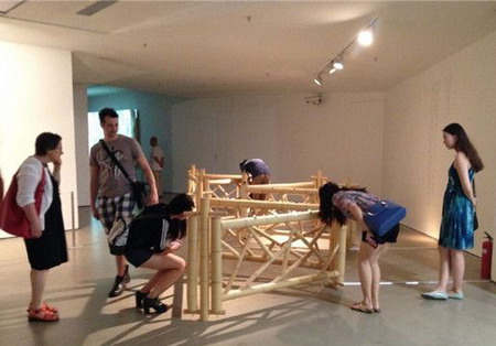 但在展览开幕当天,实验艺术界的大腕几无到场,其他到场的艺术家也寥寥可数,难比798里的个展场面。邱志杰透露,确实有艺术家对全国美展毫无兴趣,而“由于自己工作太忙,没有组织国美的学生来参展,所以这次展览央美的学生多一些。对于像自己一样的艺术家来说,参加不参加这个展览并没有多大影响和利益,对学生们倒是会有些帮助。”
