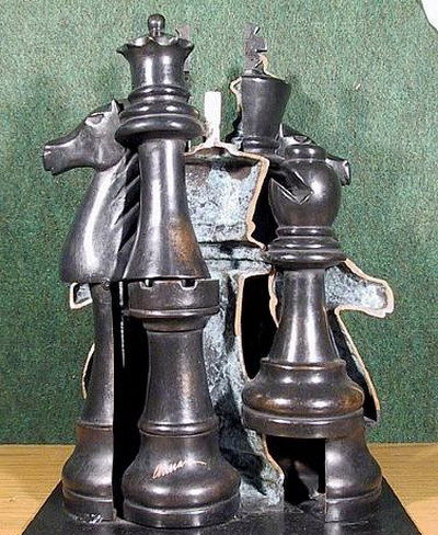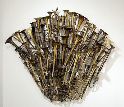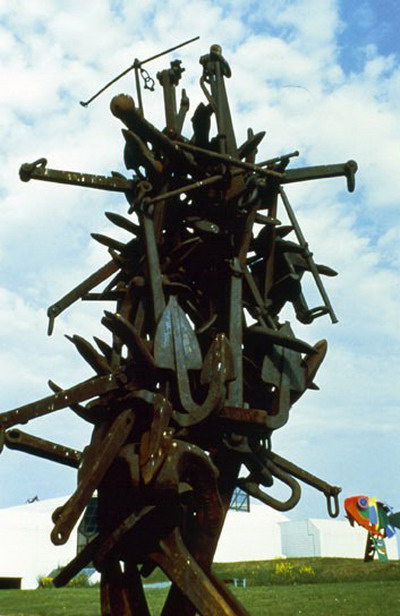 「希望乐章」(190x100x70cm),富含神话的气质,将无机物的乐器融入丰润的人体,化身为音乐旋律,创造独特的美感。阿曼所追求的就是一种作品的声明或注解,绕着这个前提作品才生出不同的变化,因此他提出「物体的艺术」,物体堆叠,集积的美,使人们对物体的形态有新鲜的观察角度。「希望乐章」呈现相同的诉求,仿佛乐章缓缓溶入生命及丰腴的神型体中,孕育的是音乐的灵魂,也是希望的象征。