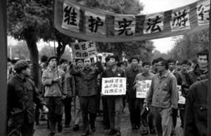 1979年10月1日,星星成员举行维护宪法**。前面是王克平