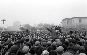 1976年,北京红旗越剧团导演李铁华在天安门广场发表演讲
