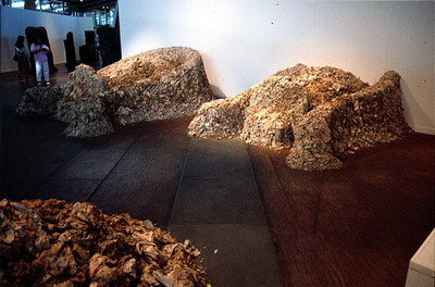 在采访中,黄永砯不断“呕吐”。问他,什么时候开始对艺术感兴趣。他答,什么是艺术?这是“反艺术“的黄永砯的典型回答。有人八卦,说150年前清末的钦差大臣、两广总督黄宗翰是他的祖先?他答,难道我和黄永胜、黄永利也有关系?如果这样,还不如说我和蝗虫的关系更大(1993年,黄永砯在牛津现代博物馆展出作品《黄祸》,“黄”和&l
