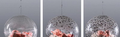 2007年8月30日,120x120x120cm x3,油彩,有机玻璃,羽毛,玻璃钢等,2007