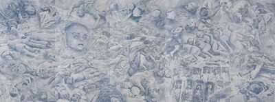 从目前的外观看,当代中国艺术似乎也如方力钧绘画中的一场奇观,一股潜流席卷一切人,将他们抛上风光无限的水面,然后又沉落于险象环生和生命狼籍的旋涡里,这股历史合流,逐渐支配了一切。在我们看来,形形色色的关于生命和现实的隐喻中,艺术家“革命”的意义,从不是被看作是其作品生产的意义,而是被看成一种不可抗拒的生命实践,只有在历史的巨大现场面前,思考才显出意义。而艺术家,由于自己的作为,对于世界、生命过程的细致思考,总是会获得天才预言般的瞬间及其意义。