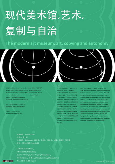 Charles Esche此次访问交流由Arthub Asia与Van Abbe美术馆主办,并作为“双倍无限”展的延伸活动之一。